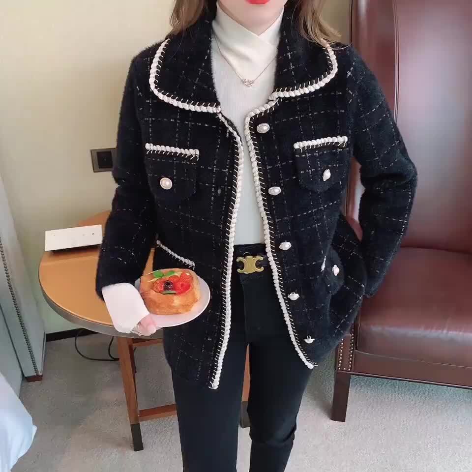 32.气质小香风外套女冬季2023年时尚水貂毛减龄显瘦上衣